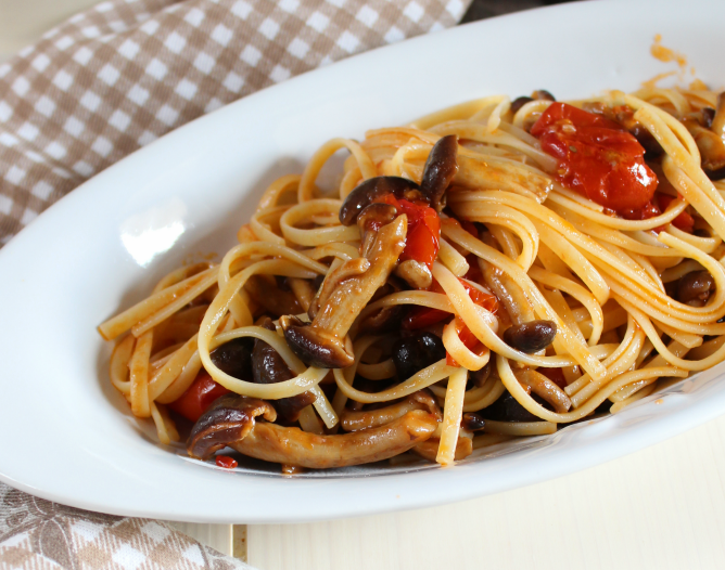 Pioppino Garlic Butter Pasta with Cherry Tomatoes